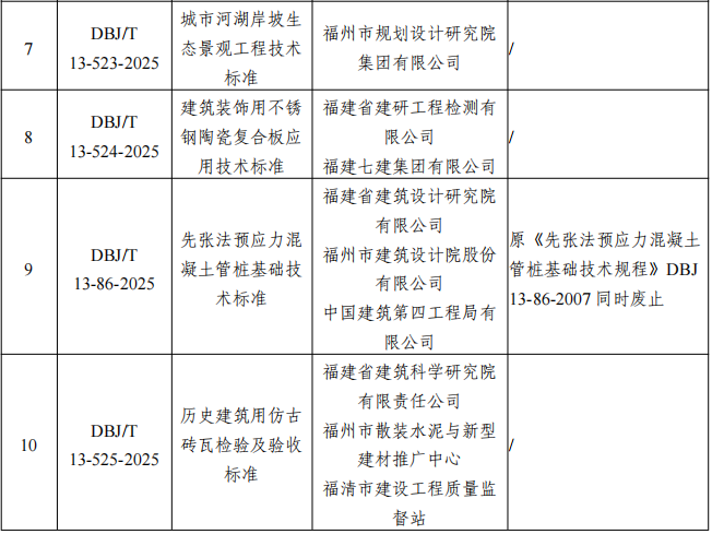 《福建省建筑智能照明系统工程技术标准》等10项工程建设地方标准发布