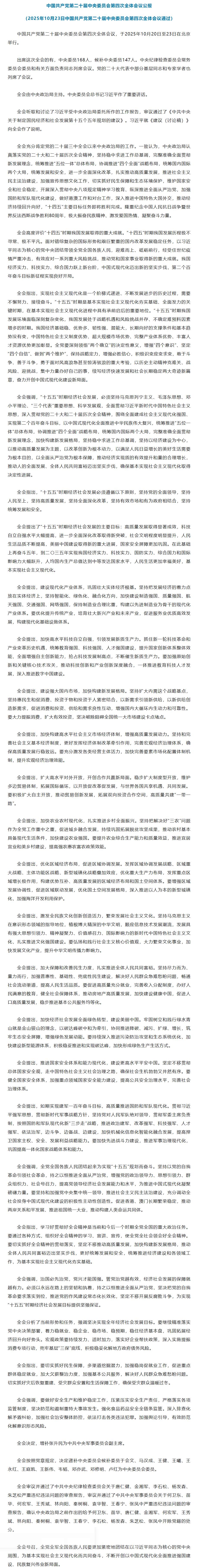 中国共产党第二十届中央委员会第四次全体会议公报