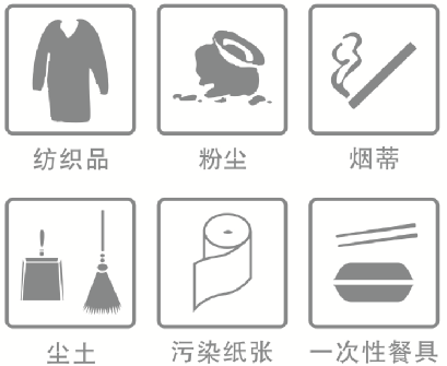 (3)其他垃圾:除有害垃圾、可回收物以外的各种垃圾,粉尘、卫生间废纸、纸巾等难以回收的废弃物。其分类种类见图7。