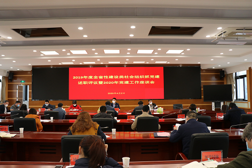 2020年4月2日,省住建厅在十楼会议室召开行业党委2019年度抓基层党建工作述职评议暨协会党建工作座谈会。行业党委专书记蒋金明同志做述职报告,行业党委委员、全省性建设类社团党支部书记、党员代表作出评议,省委组织部两新办王炳毅主任一行出席会议。会上印发了《全省性建设类社会组织支部党建工作2019年总结及2020年计划(汇编)》及《全省性建设类社会组织2020年党组织活动计划学习资料(汇编)》,行业党委委员余勇同志现场做了领学。